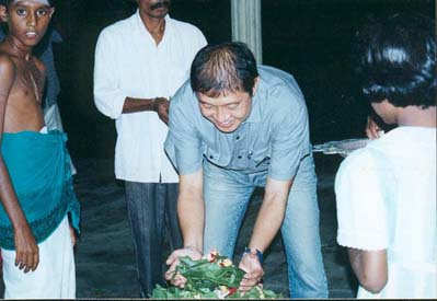 Me ( white )With Famous international Artist Li Zi Jian and the lady painting is his work.